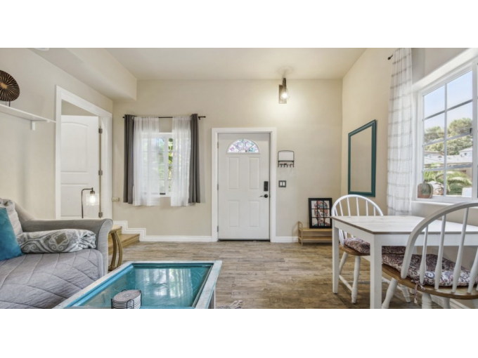 This is a fully furnished 2 bedroom, 1 bathroom apartment in Los Angeles, California. Private entrance, lower unit of a tri-story house with shared outdoor space.