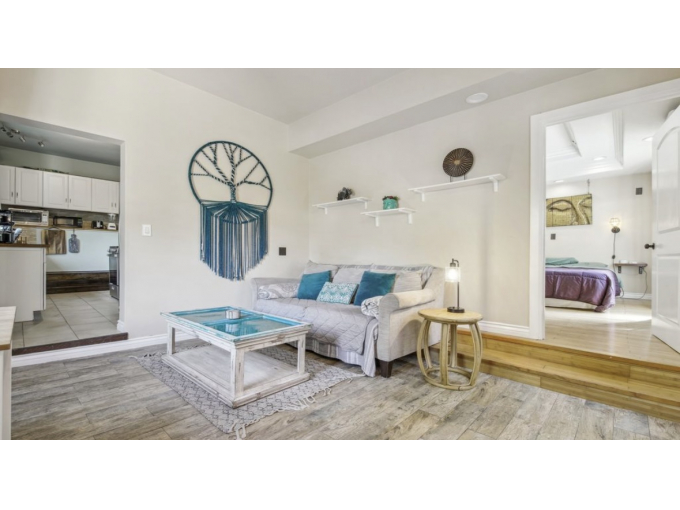 This space includes keyless entry, high speed WiFi, 2 dedicated workspaces, fully equipped kitchen, comfy living room with large screen TV.